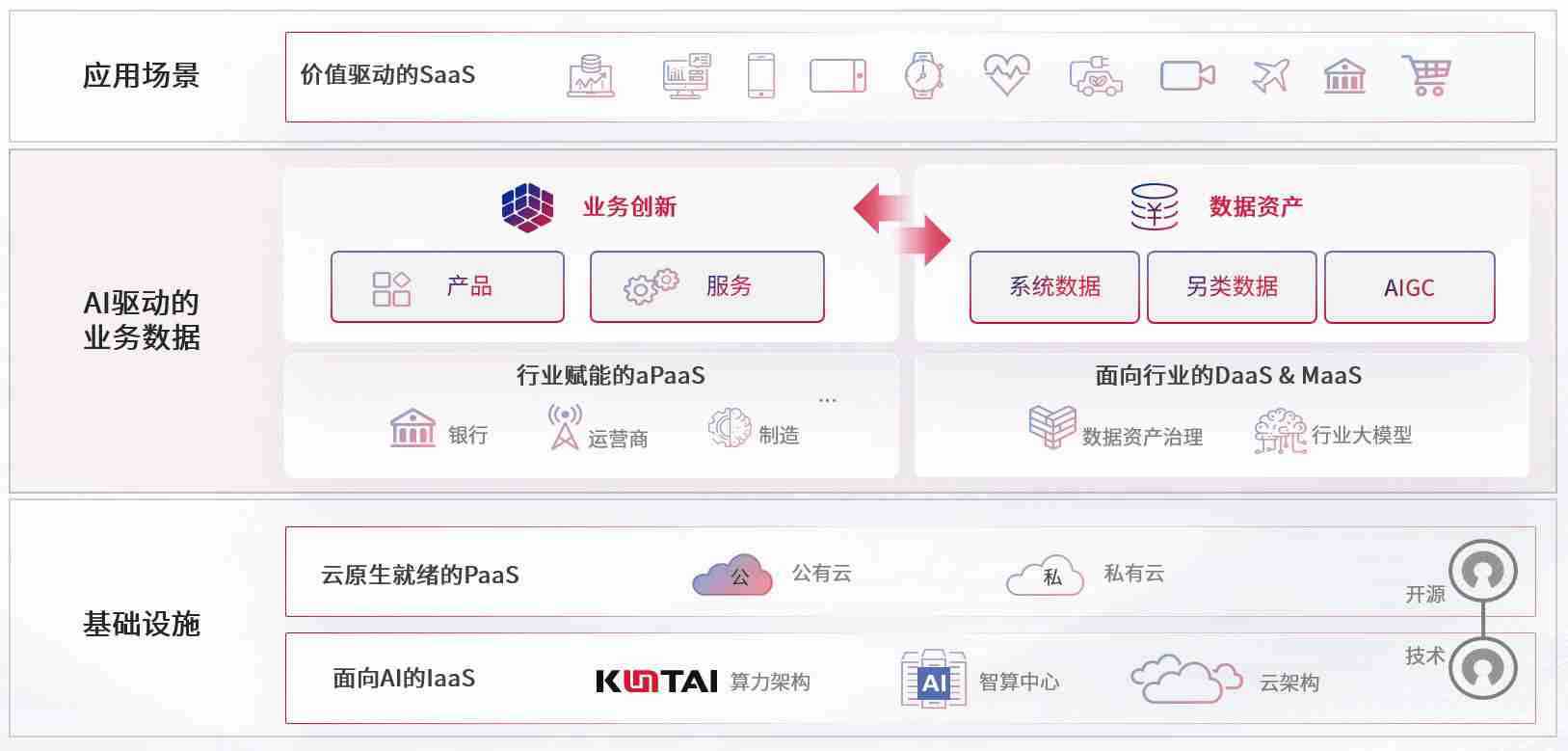 数字时代,,,,围绕企业数字化转型的关键要素,,,,长征娱乐数码开创性的提出数云融合战略和技术体系框架,,,着力在云原生、、、、数字原生、、AI原生和信创产业上架构产品和服务能力,,为处在不同数字化转型阶段的快消零售、、、汽车、、、、金融、、医疗、、、政企、、、、教育、、、运营商等行业客户提供泛在的敏捷IT能力和融合的数据驱动能力,,,,构建跨界融合创新的数字业务场景和新业务模式,,,助力企业级客户建立面向未来的核心能力和竞争优势,,,,全面推动社会的数字化、、、、智能化转型升级。。。